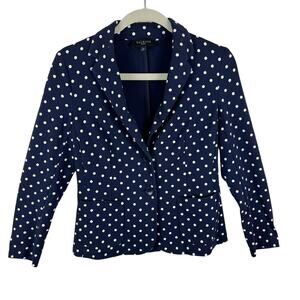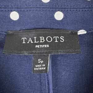 Talbots Navy Blue White Polka Dot Single Breasted Lightweight Knit Blazer Sz SP