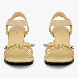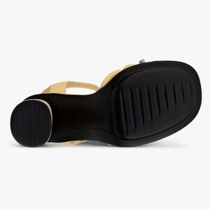 Chic beige sandals with strappy design. Features a sturdy block heel. Ideal for versatile wear.