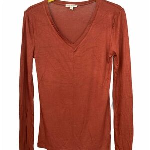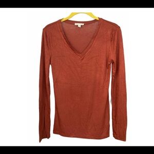 Rayon V Neck Long Sleeves Top. Size Small. Color is Rust. Strecthy and soft material. Super soft rayon material next to your skin. Sorry for the wrinkly look it is due to packaging when it arrived to me. Thank You!