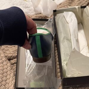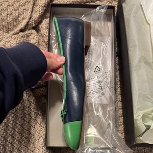 J. Crew ballet flats in navy and green. Leather. New in box.