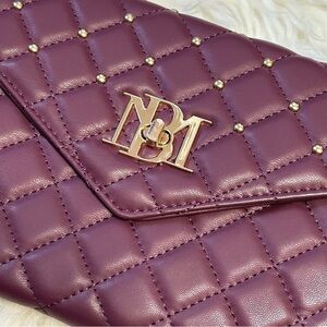 New with tags Badgley Mischka plum and gold diamond quilted convertible crossbody bag purse.
