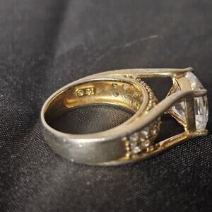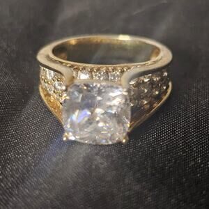 Stunning cushion-cut cubic zirconia engagement-style ring crafted in 925 sterling silver with a rich gold-plated finish. Features a wide split-shank band accented with sparkling pavé-set CZ stones for exceptional brilliance and a luxury-inspired look.