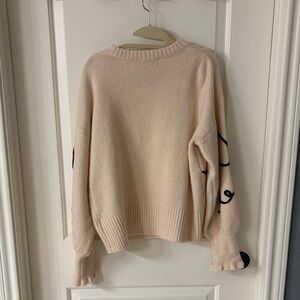 Elegant Gilli sweater in soft cream. Features striking black bow patterns. Perfect for adding flair to your outfit.