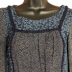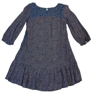 Anthropologie Holding Horses Ruffle Mini Dress Tunic Prairie Long Sleeve Size 0. Blue colorway. Trim detail. Versatile wear as mini dress or tunic. Ruffle bottom. Balloon sleeves. Back button keyhole. 29" length. 17" pit to pit.