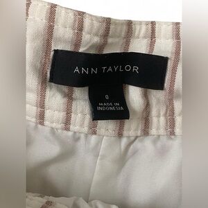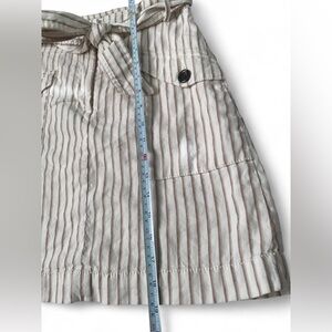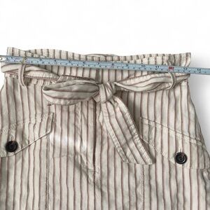 Ann Taylor Striped Linen Blend Mini Skirt - Paperbag Tie Waist - Neutral - Size 0