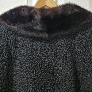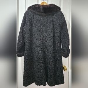Vintage Persian Lamb Fur Coat with Mink Fur Collar Size M Luxury Perfect Conditi