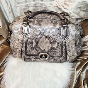Coach Campbell Exotic Snakeskin Embossed Leather Satchel Bag.