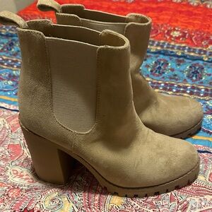 Super cute boutique booties only worn 2x Elevate your look with these stylish taupe heeled boots. Versatile and chic for any outfit.