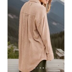 READ We The Free Shirt Womens XS Beige Herringbone Tweed Long Sleeve Tunic Top