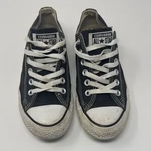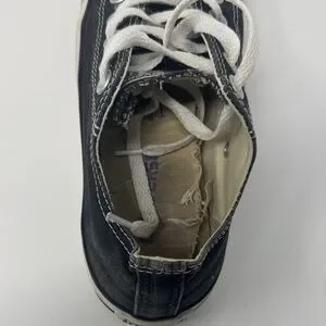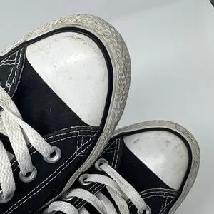 Timeless Converse design. Black canvas with white accents. Lots of wear - see photos .