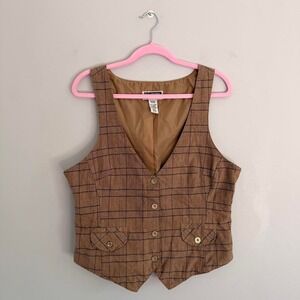 TAN PLAID ROUTE 66 BUTTON UP VEST