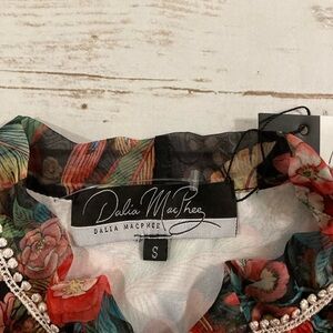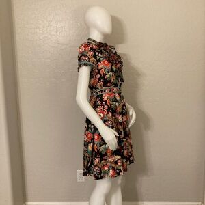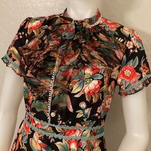 Dalia Macphee Black Floral and Birds Mini Dress Small