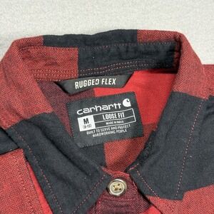 Carhartt Rugged Flex Buffalo Plaid Flannel Shirt Womens M Loose Fit Red Black