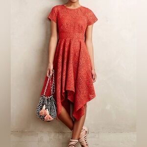 Anthropologie Prima Asymetric hanky Hem Dress - Size 8 - red/orange color - back zipper closure - pre owned - excellent condition