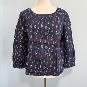 Boden Women Lavinia Top Navy Size 6 Button Back Dog Walker Print. 109% linen.Great condition.