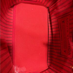 Elegant tote with iconic checkered pattern. Features a vibrant red interior. Perfect for daily essentials. Light usage as noted in photos. Please ask any questions. No dust bag or box.