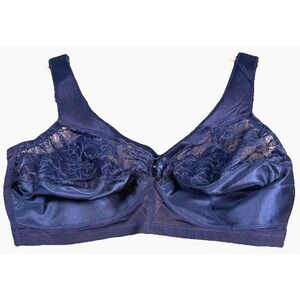 Glamorise Bra Magic lift Full Figure Lace Support Navy Blue Size 42DD X1001