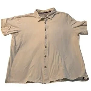 Weatherproof Vintage Mens L G Short Sleeve Button Down Shirt Beige