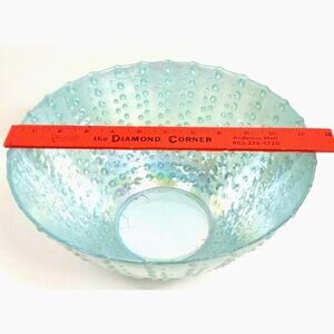 Three Hands Glass Console Bowl Scalloped Rim Hand Painted Hobnail Bumpy Design Made in Turkey 11"