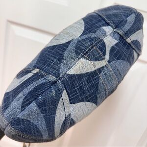 A classic Y2K-era Coach hobo crafted in tonal signature denim with rich brown leather trim. This early 2000s style features the oversized tonal “C” monogram woven into denim, a braided leather shoulder strap, and a softly structured silhouette that sits comfortably on the shoulder—an effortlessly cool everyday bag from Coach’s heritage era.