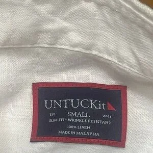 UNTUCKit 100% Linen Crisp White Casual Button Down Shirt Size Small Slim Fit