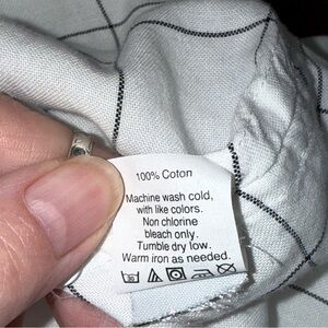 Classic Madewell white cotton blouse featuring a timeless black windowpane grid pattern. Designed with a button-front closure, soft collared neckline, and relaxed short sleeves for an easy, polished look. Lightweight and breathable 100% cotton, perfect for warm weather layering or effortless everyday wear. Ideal for spring, summer, and early fall, this versatile top transitions seamlessly from office casual to weekend minimalist style. Pair with denim, trousers, or skirts for a clean, modern outfit. A crisp spring-to-summer staple with minimalist, modern vibes—perfect for capsule wardrobes, workwear, and everyday casual looks.