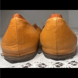 Bright orange flats with a stylish pink toe. Perfect for a bold look. Comfortable and elegant design by Prada.