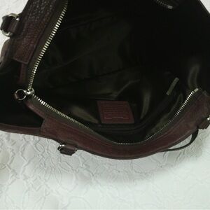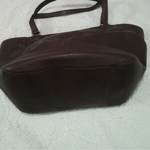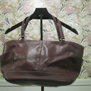 Sophisticated Coach tote in rich dark brown leather. Ideal for everyday use. Stylish and practical design.