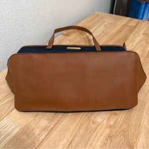 Michael Kors Kempton Nylon Satchel Tote Purse Shoulder Bag in Navy and Brown