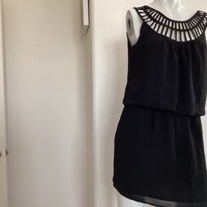 Naked Zebra, NWT, size S, black, Roman neckline, tiered mini dress