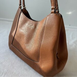Kate Spade Lena Triple Compartment Shoulder Bag in Warm Gingerbread, KH435. Very good preowned condition. A little bit of wear to the corners, as shown; otherwise, in beautiful condition.