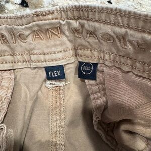 American Eagle Real Good Flex Chinos in a versatile khaki tan color.