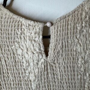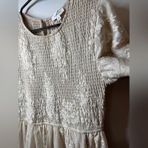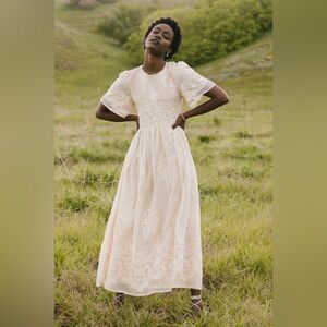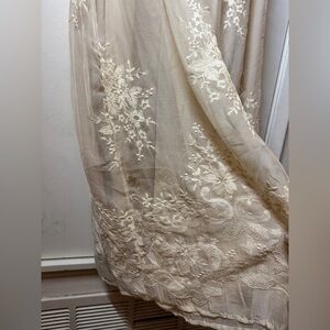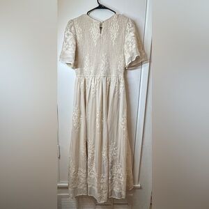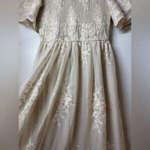Bohme Alora Embroidered Floral Champagne Cream Tulle Maxi Dress Size Medium