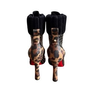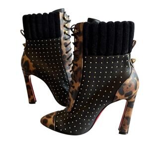 Christian Louboutin Dakita 100 Studded Spike Leopard Leather Bootie EU 37 US 7