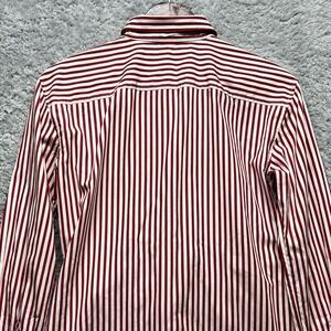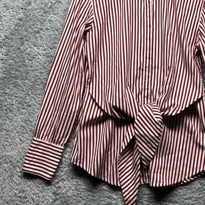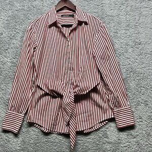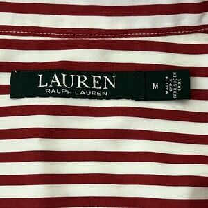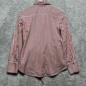 Lauren Ralph Lauren Top Womens Medium Red White Stripe Tie Front Shirred Cuffs