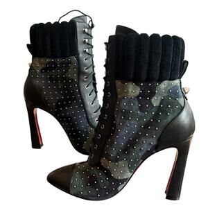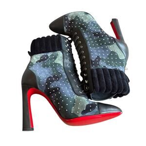 Christian Louboutin Dakita 100 Studded Spike Camo Suede Bootie EU 36 US 6