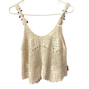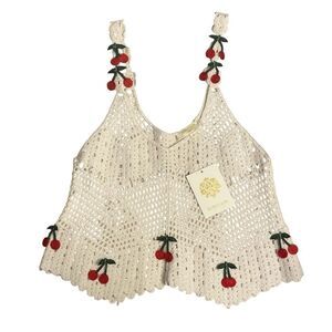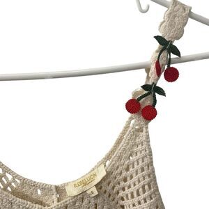 Rebellion Crochet Tank Top Cherries Cream & Red Junior’s Size Small***