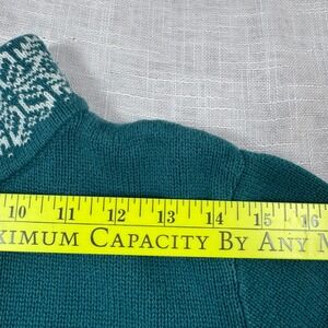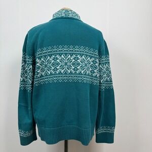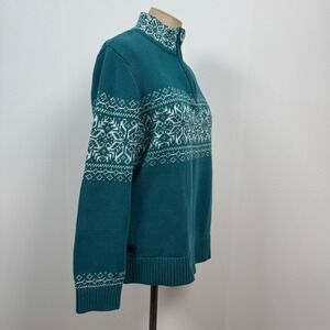 Christopher Banks Women Large Teal Snowflake 1/4 zip Mock Neck Fair Isle Pullover Sweater Nordic Scandi Scandinavian Winter Granola Girl