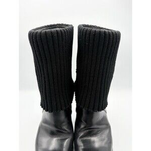 Gucci Black Leather Ankle Boots w/Knit Fold Over Accent & GG Logo Sz EU 36.5