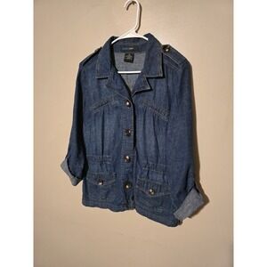 French Cuff Denim Blue Jean Jacket Shacket Women's Size Medium. Excellent Used Condition