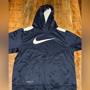 Nike Youth L Therma-fit Polyester hoodie with white accents and swoosh