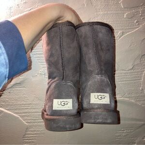 Experience warmth with UGG's classic dark brown boots. Ideal for winter wear.