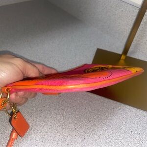 This chic highly collectible women's vintage wristlet features a vibrant pink and orange design, perfect for adding a pop of color to any outfit. Ideal for everyday use, it combines style and functionality effortlessly.