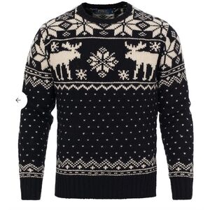 Ralph Lauren vintage men's medium double-stitch Nordic wool sweater with moose imagery.