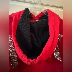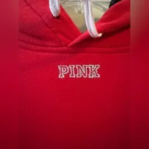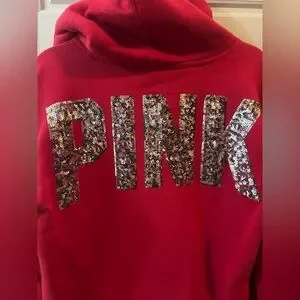 Victorias Secret PINK size small. Bright red hoodie with sparkling silver sequin letters. Cozy and stylish. Smoke free home.