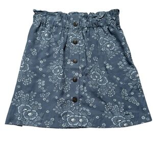 Madewell Blue Floral Paperbag Mini Skirt Small Button-Front Pockets Boho Chic