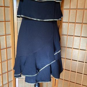Wayf Dress Black Off Shoulder Gold Trim Layered Festive Party Dress