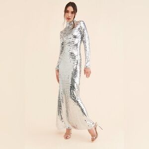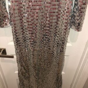 Simon Miller x Anthropologie Sculpty Silver Sequin Turtleneck Dress Gown sz 12