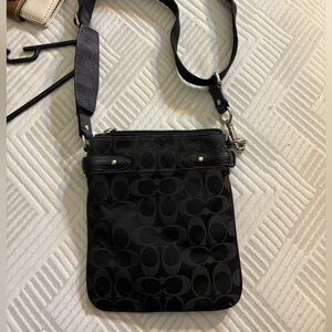 Elegant Coach crossbody bag in black with silver hardware. Ideal for daily wear.