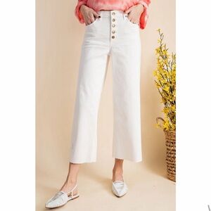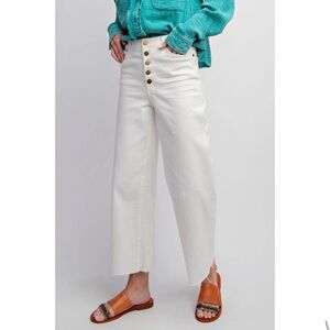 NWT Easel Wide Leg Twill High Rise Raw Hem Button Fly Stretch Pants White Medium